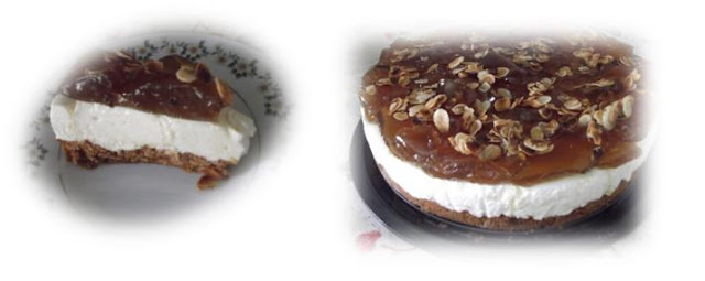 Verta o preparado na forma de aro e enterre pedaços das 7 bolachas que entretanto tinha reservado, aleatoriamente pelo creme (na vertical) e desfaça a outra em migalhas para decorar por cima e leve ao frigorífico para solidificar (de preferência deve ficar de um dia para o outro).